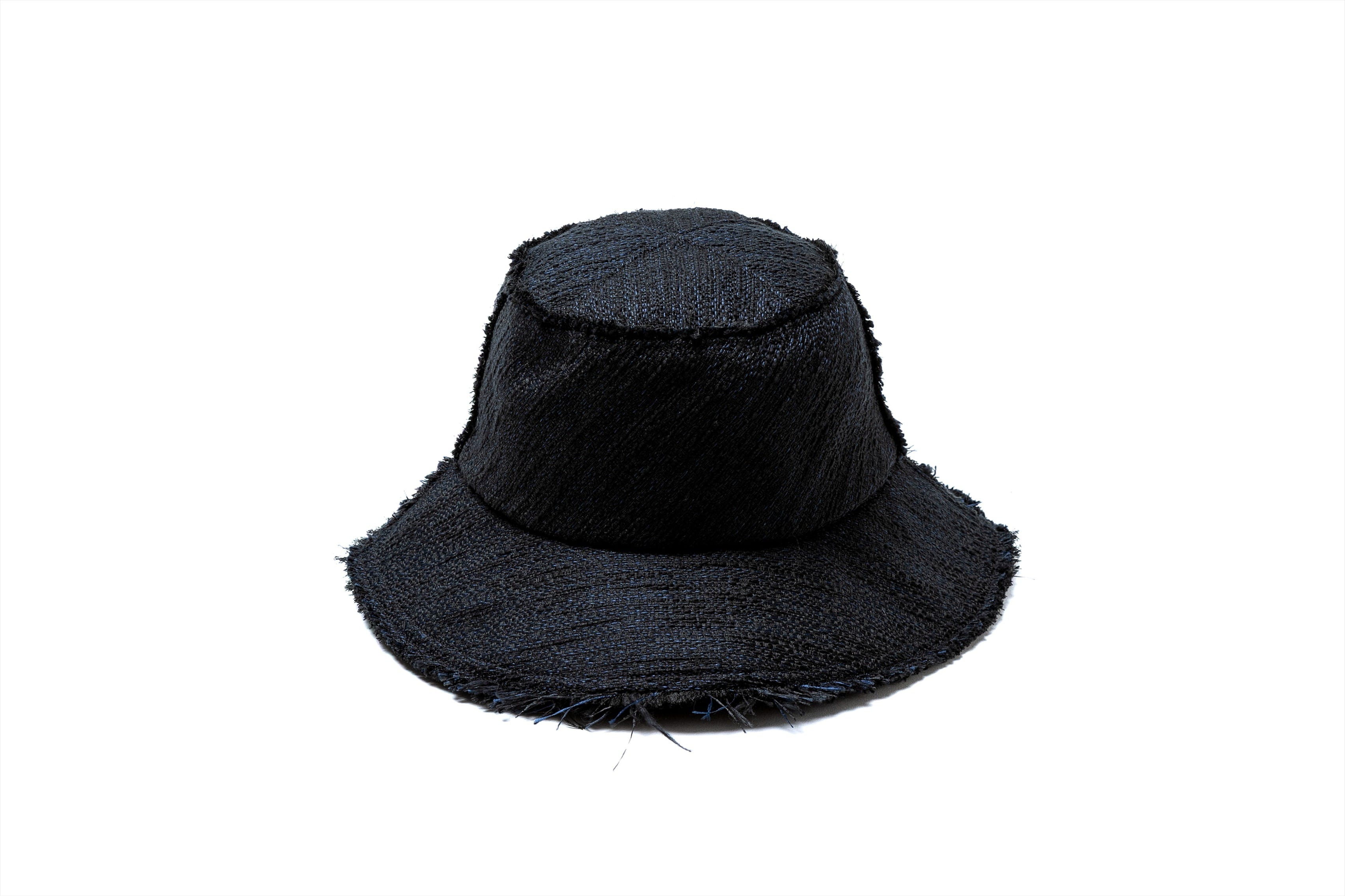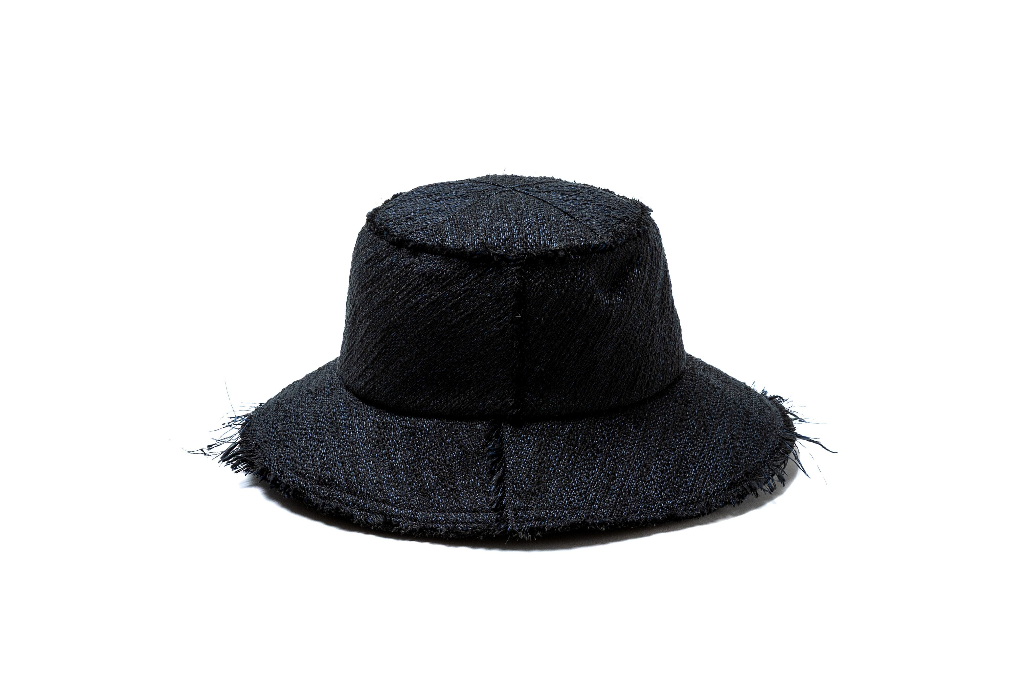 複雑なハギと断ち切り仕様がモダンな印象のハットです。