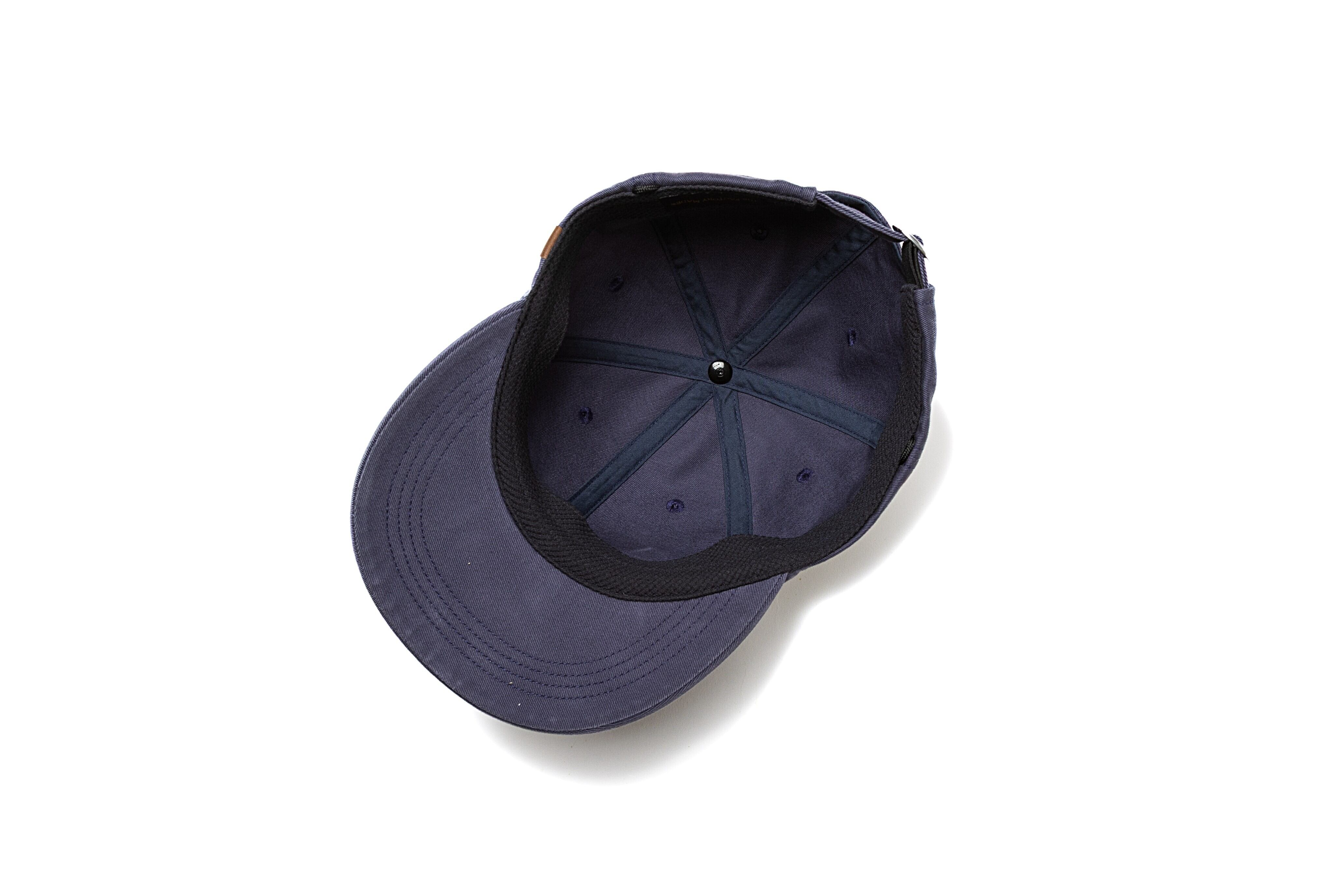 硫化染めのコットンチノ生地に、ボールバイオ加工を施しこなれた表情のキャップです。