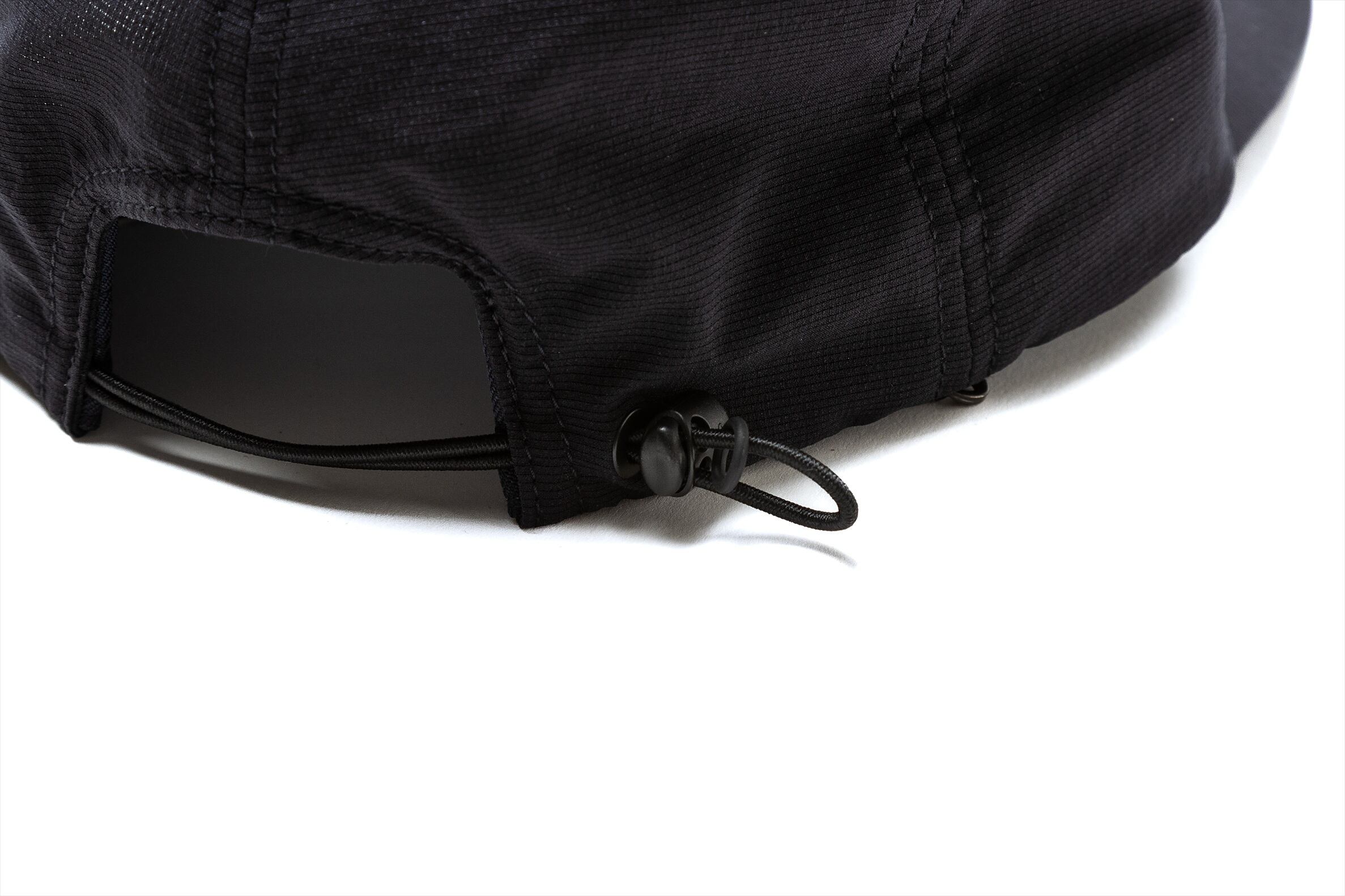 生地の持つ2wayストレッチの特性を活かし、バックアジャスターもストレッチコードにし頭を包み込むフィット感を実現しました。