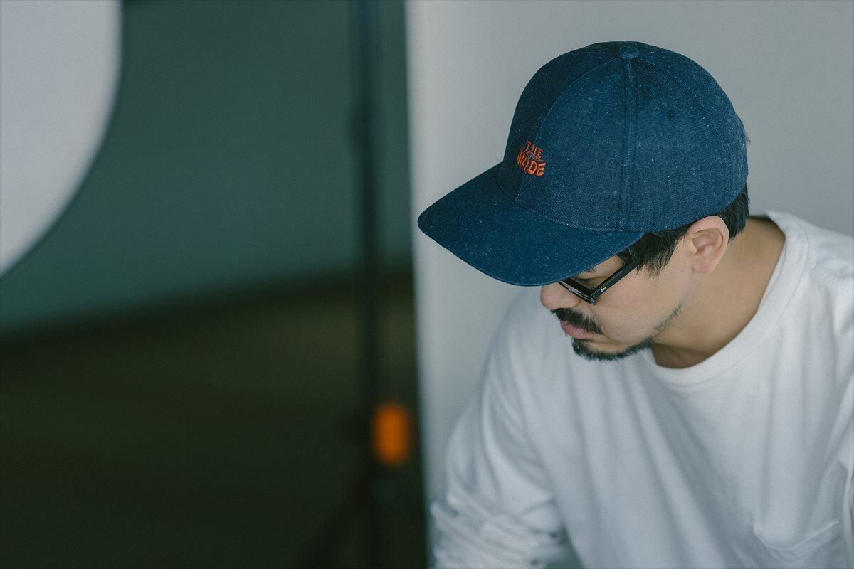 不規則に並ぶネップのナチュラルさを持ちながらも、自分色に育てられる様にあえてウォッシュをかけずリジットに仕上げています。フロントロゴの刺繍カラーは派手目なオレンジですが、デニムならではのムラ感やネップと相まって、被ると意外と落ち着いて柔らかく見えます。