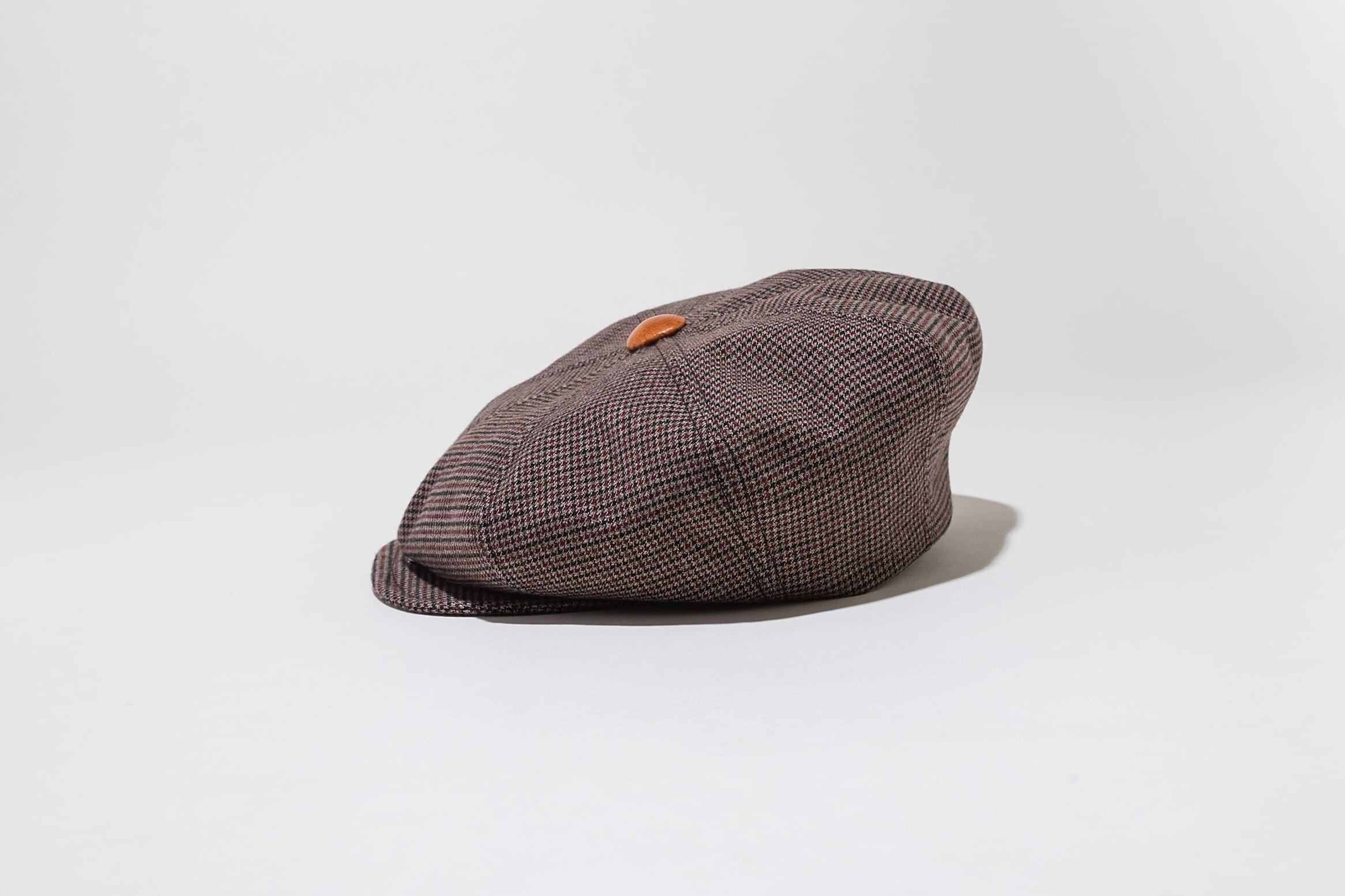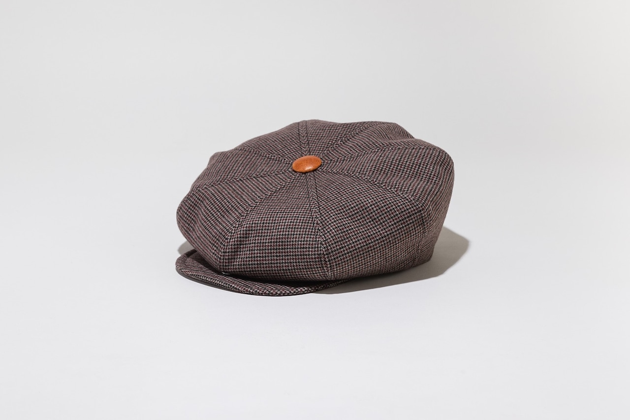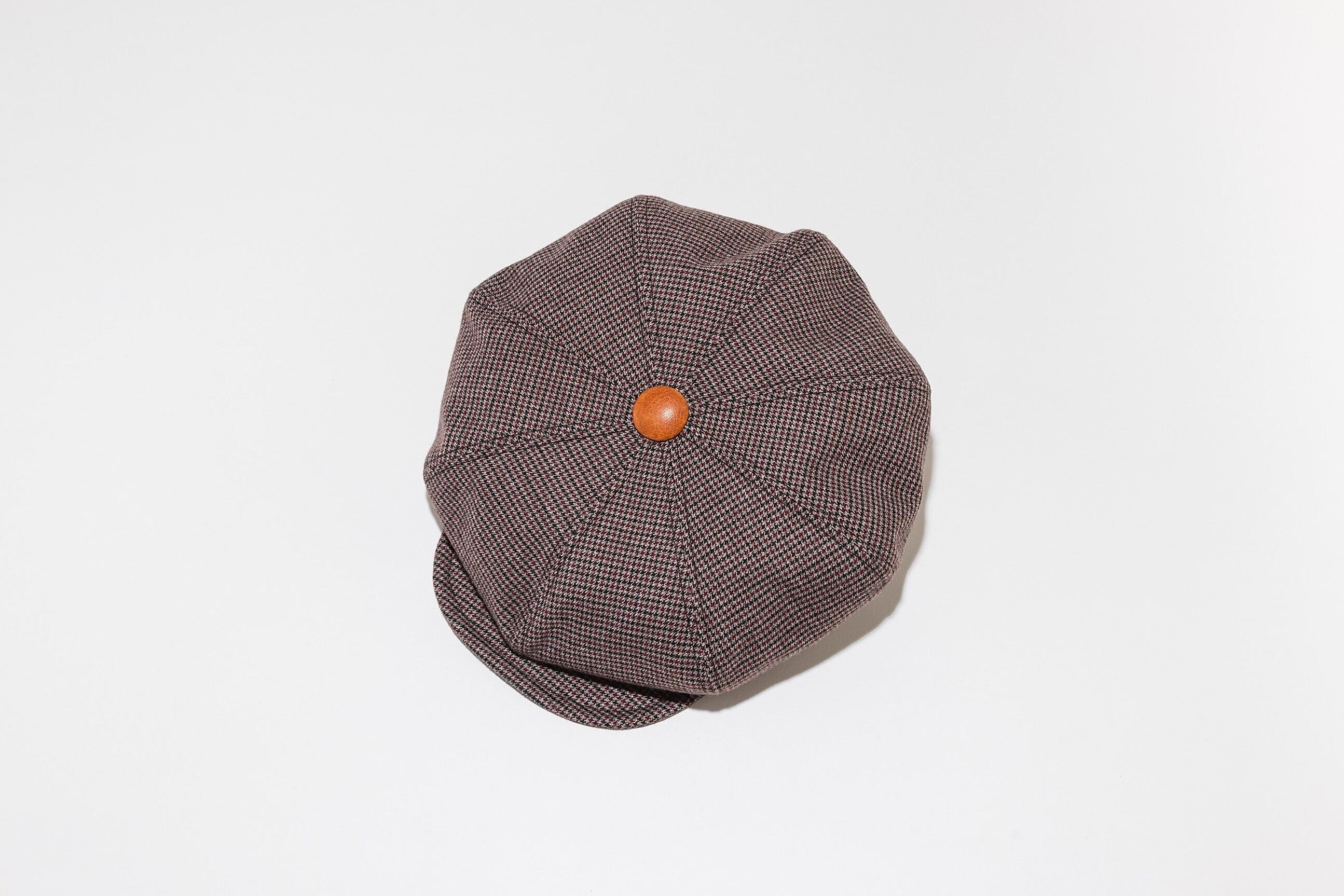 クラシカルで品のある千鳥格子を本体生地に使用し、天ボタンにはレザーを使用しクラシックな雰囲気を保ちながら程よいアクセントにしています。