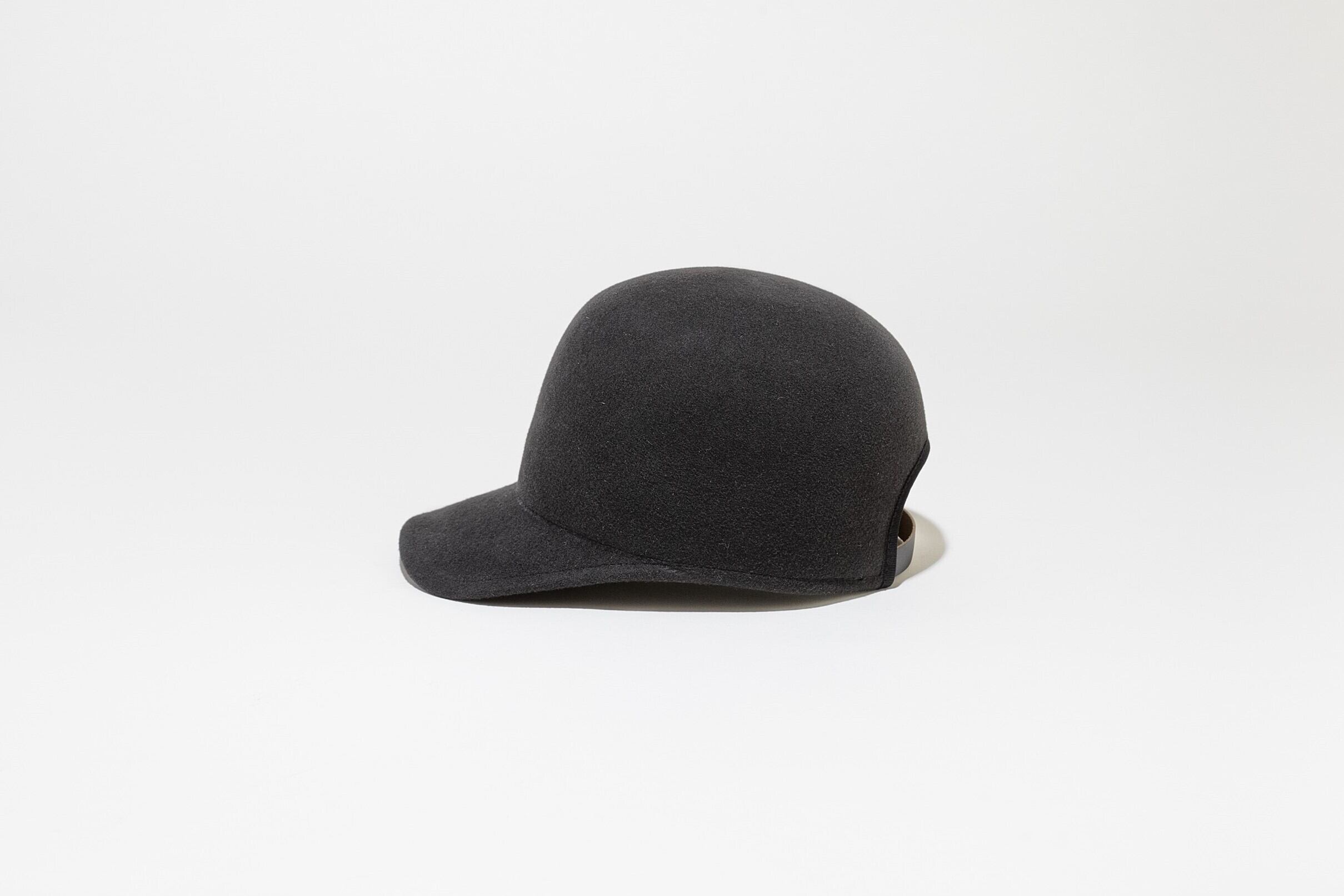 材料には毛並みがキレイでキメ細かいポルトガルウールを使用し、ハットと同じ製法で作ることにより、縫製が無く通常のキャップでは出ないミニマルな上品さが有ります。