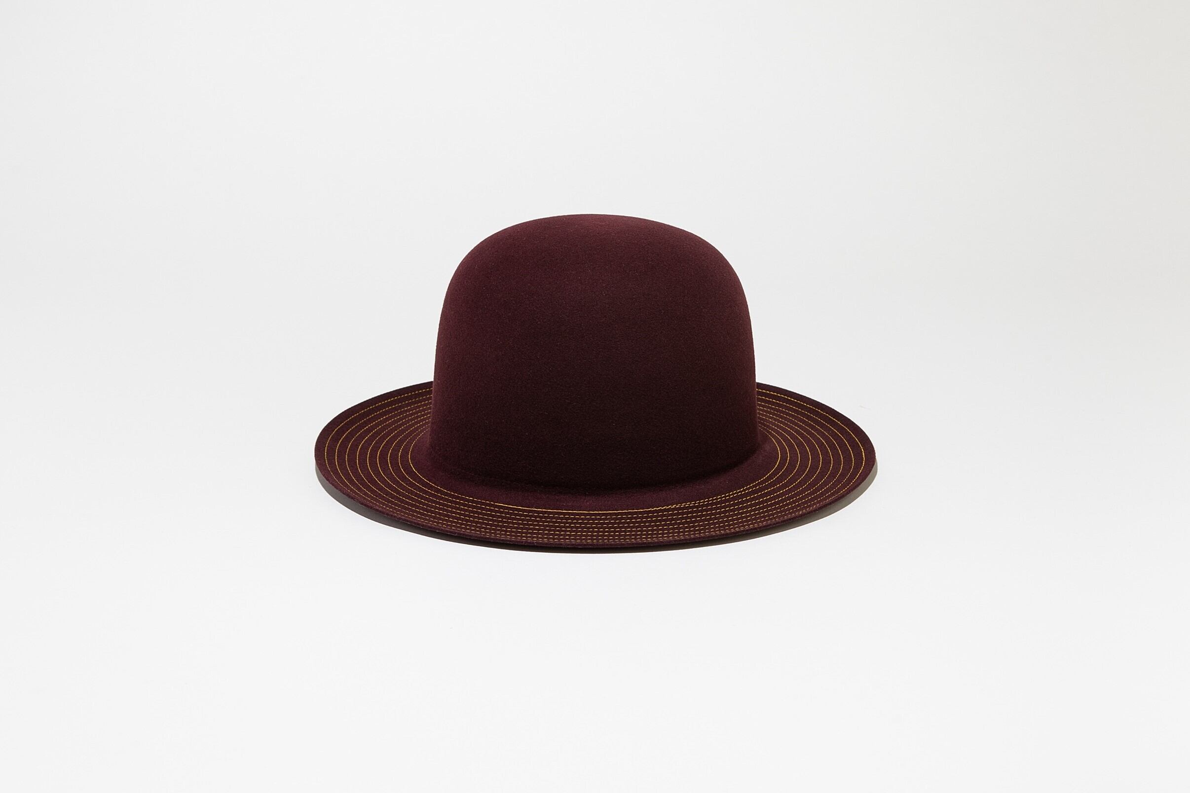 布帛の帽子と違い縫製しない製法で作られるのがフェルトハットの特徴ですが、敢えてブリムにステッチを入れてアクセントにしています。