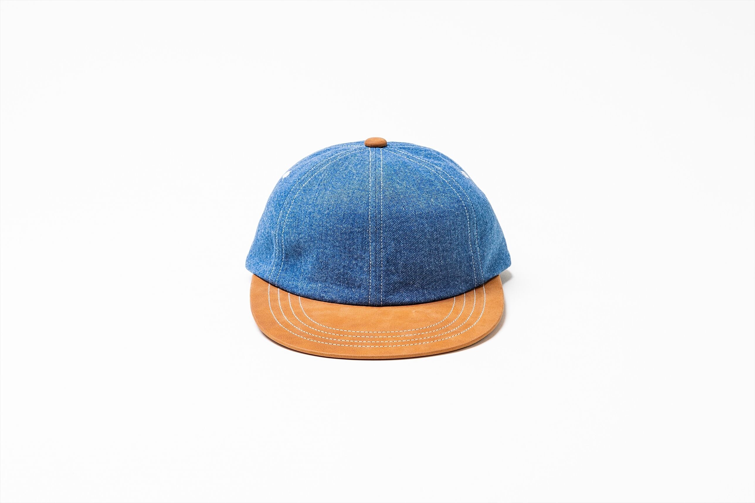 デニムとレザーの、異素材の組み合わせと配色がポイントのロングブリムのキャップです。