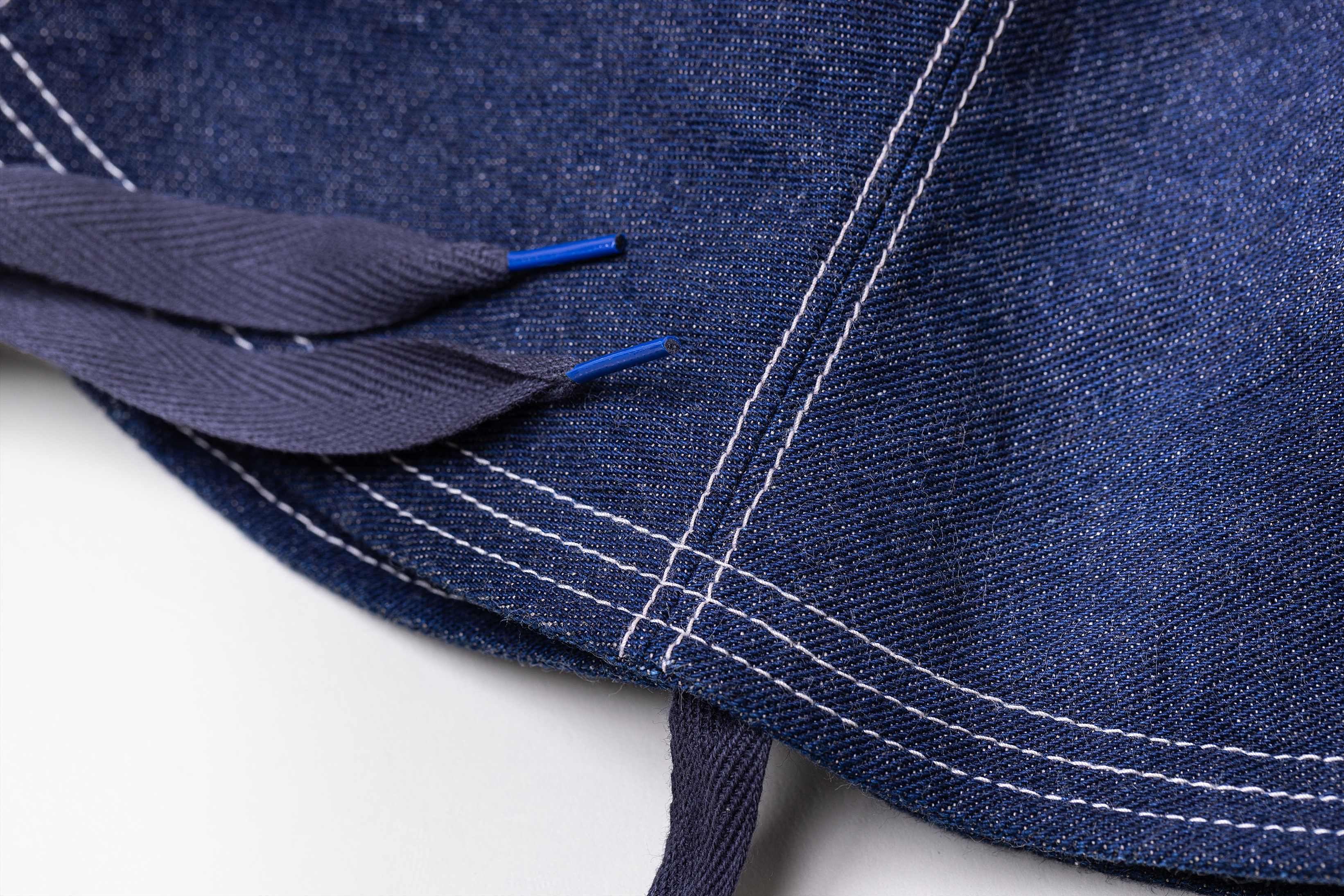 本体に使用しているデニムは希少な左綾デニムで、糸の撚りと同じ向きで生地を織り上げることで糸の撚りが締まり綾目が立ち、表面がフラットになりソフトな風合いなのが特徴です。