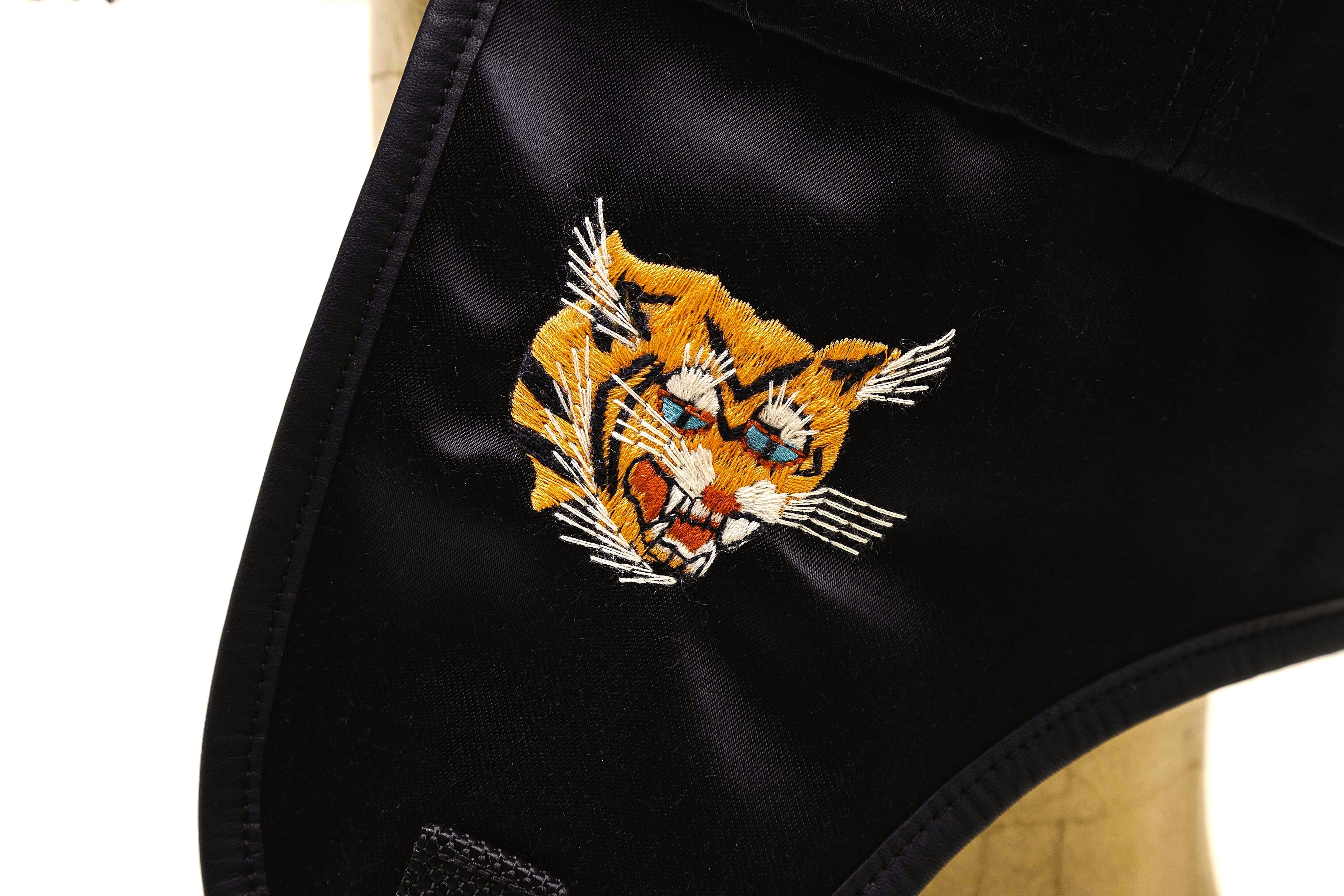 ヴィンテージ感のある見た目ながら、耳を下ろした状態で被ると"福"と"虎"が出てくる遊びの効いたデザインです。